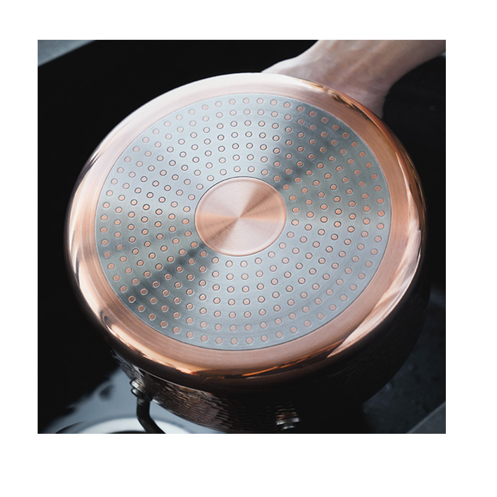 材 料 :三層銅,2.5mm鍋內部處理:精細砂光鍋外身處理:鏡面光底 部 :導磁底部把 手 :鑄鋼+槍黑色規 格: